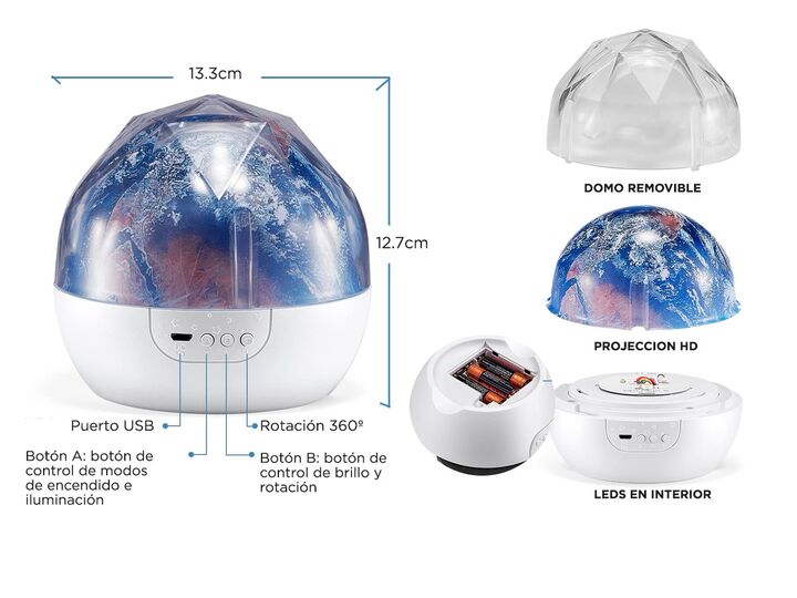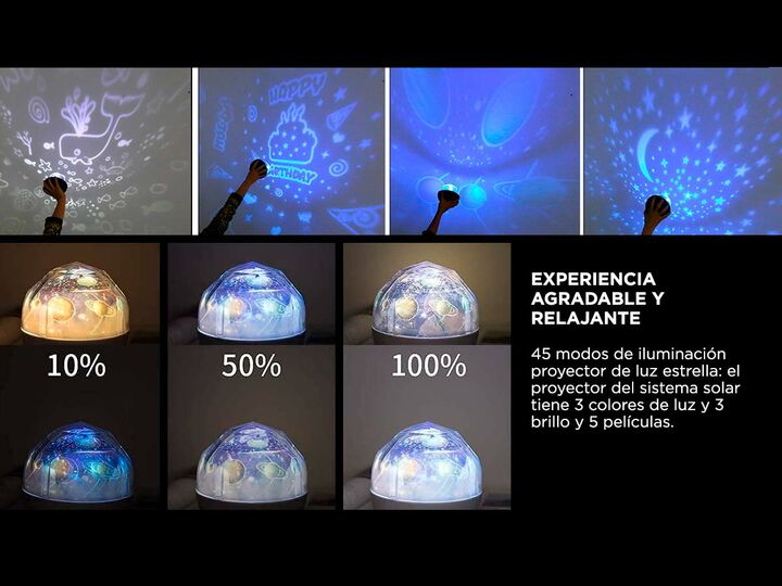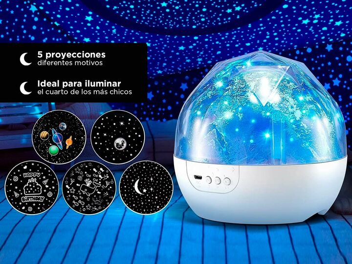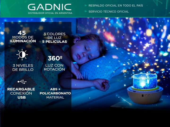 ¡Nueva lampara de proyección LED con más de 5 películas! Convertí la habitación de los más pequeños en una aventura con la nueva lampara con proyección de Gadnic. Ilumina la habitación de los mas pequeños para que sientan como si estuvieran tumbados bajo las estrellas. El soporte de proyección en el...