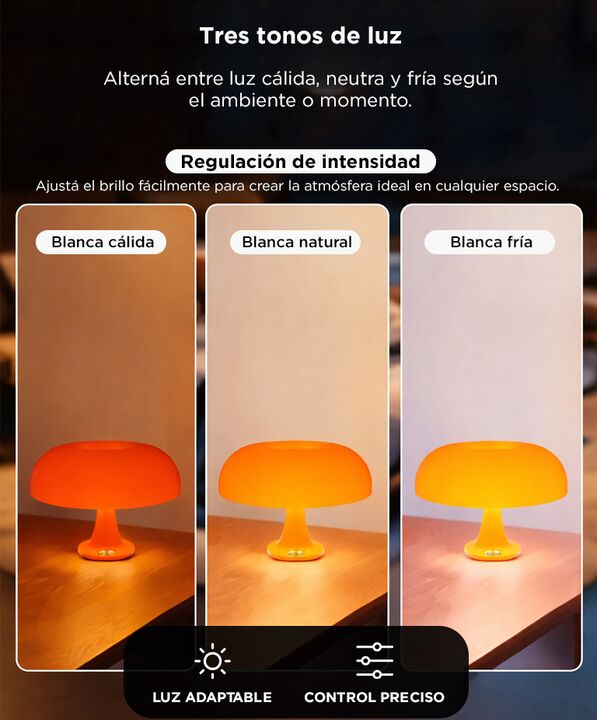 Iluminación adaptable para cada momento: La lámpara LED GADNIC ofrece tres tonos de luz que permiten ajustar el ambiente según la actividad. Es ideal para descanso, lectura o iluminación decorativa. Control de intensidad integrado: Gracias a su dimmer incorporado, la lámpara LED GADNIC permite regul...