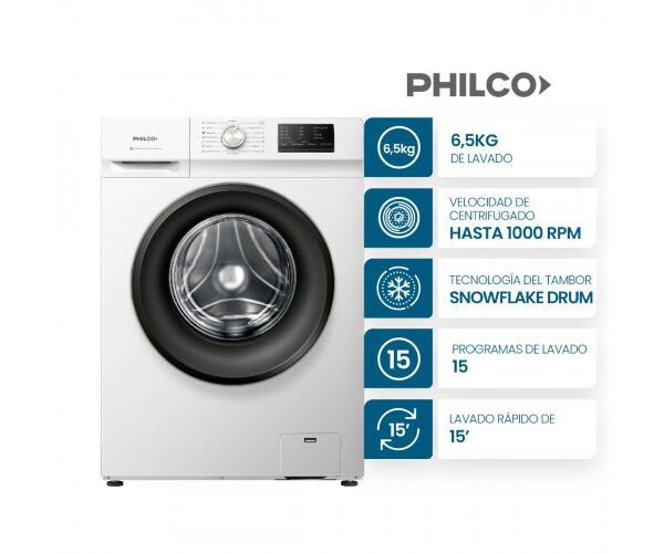 Su capacidad de 6,5 kg es ideal para hogares modernos, mientras que su sistema de carga frontal y diseño compacto permite integrarlo fácilmente a cual...