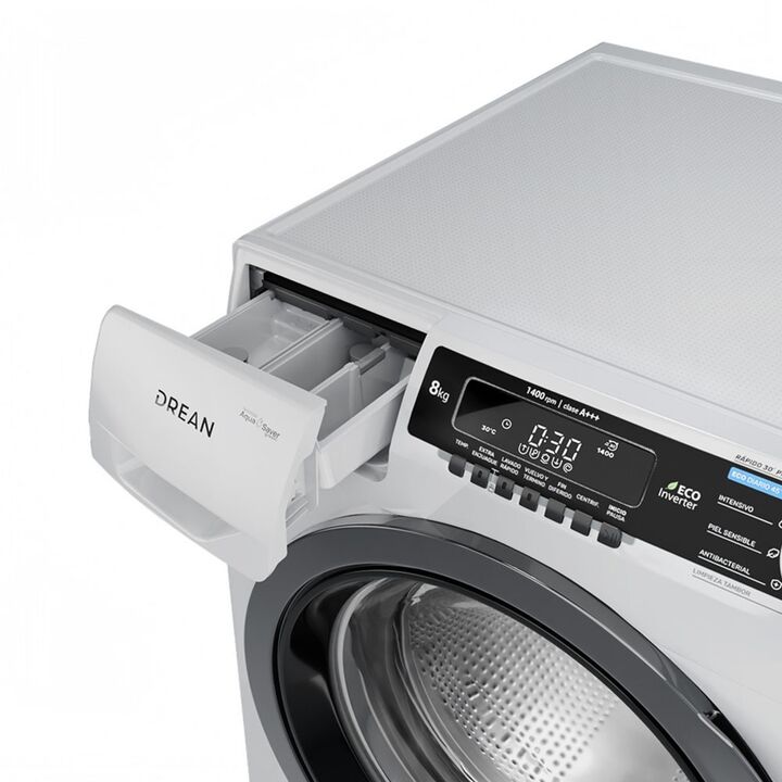 Lavarropas Ecoinverter 8 Kg 1400 RPM Blanco Drean - LCFDR0814SB0 Lavarropas automático de carga frontal. Tecnología Ecoinverter. Capacidad de 8 Kg. Color blanco. Hasta 1400 RPM. Eficiencia A+++. Sistema de lavado europeo. 13 programas. Display LED con perilla retroiluminada. Bloqueo para niños. Sist...