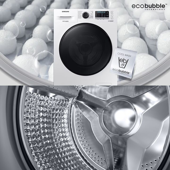 Lavado 9.5 Kg | 1400 RPM | ECOBUBBLE | DIGITAL INVERTER | Lavado Rápido de 15 PODEROSA ACCIÓN DE BURBUJAS La tecnología Eco Bubble™ ofrece un lavado poderoso, incluso a bajas temperaturas. El detergente es convertido en burbujas, que penetran más rápidamente en las telas y remueven las manchas fácil...