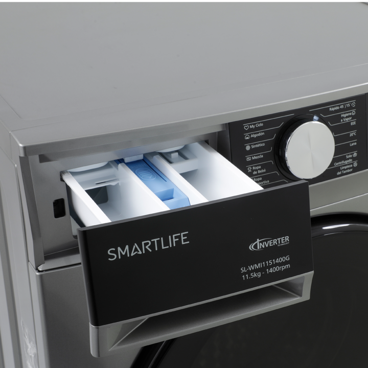 Lavarropas Smartlife SL-WMI1151400G 11,5kg Inverter 1400rpm El nuevo lavarropas Smartlife SL-WMI1151400G combina tecnología avanzada, eficiencia energética y un diseño moderno para brindarte una experiencia de lavado superior. Con 11,5 kg de capacidad y un potente centrifugado de hasta 1400 rpm, es ...