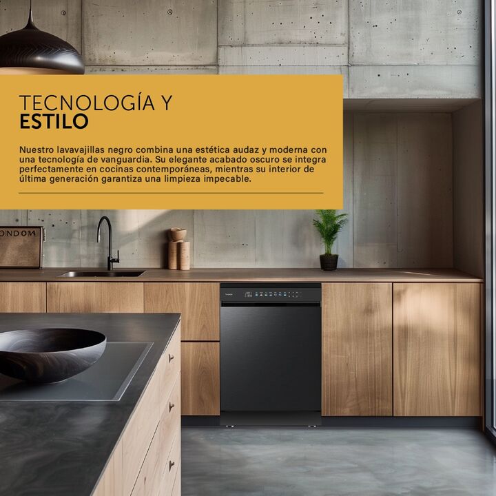 Descubrí el placer de tener más tiempo para vos y tu familia con el nuevo lavavajillas de Acero Inoxidable Negro de Vondom. Su diseño sofisticado en color negro no solo realza el estilo de tu cocina, sino que transforma tu rutina diaria con tecnología de última generación. Con capacidad para 15 cubi...