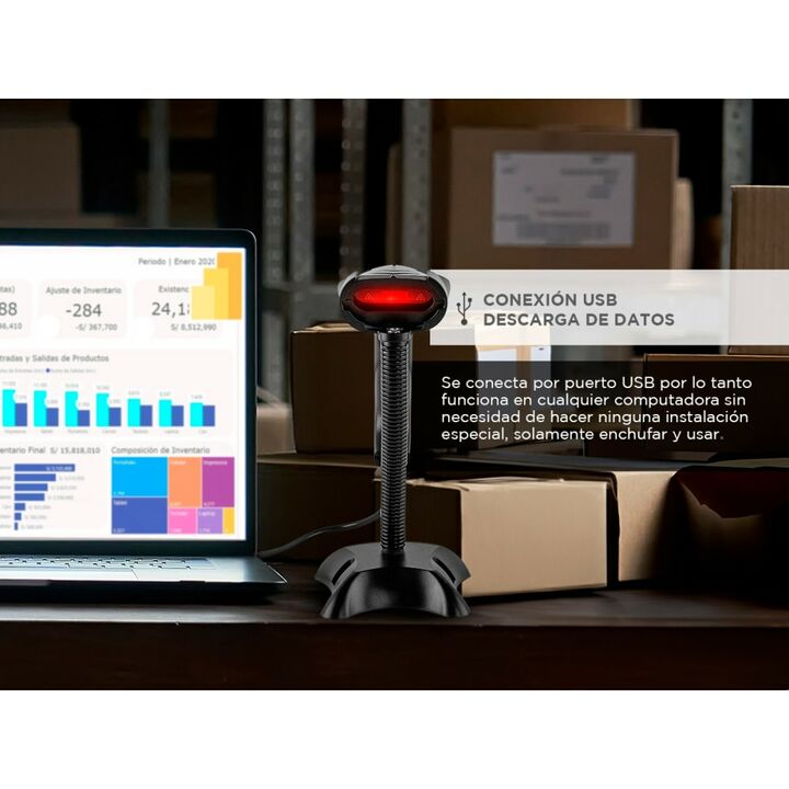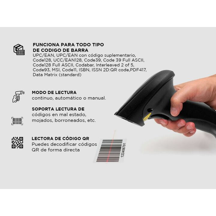 Este lector de códigos de barra con tecnología 2D con alta sensibilidad es capaz de leer en pantallas electrónicas. Además puede captar todos los códigos de barras estándar de 1D. Es una solución asequible para las empresas que desean actualizar sus equipos ya que tiene un precio competitivo y un re...