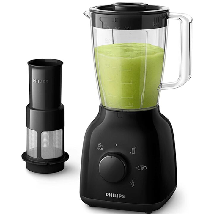 Licuadora Philips Daily Modelo HR2126-90 Ahora preparar alimentos y licuados frescos es más fácil. Jarra resistente de plástico reforzado, de 1,5 lts. Potente motor de 500 W para batir y mezclar fácilmente 3 velocidades y función Turbo, para ingredientes blandos y duros Filtro para jugo sin pulpa Pu...