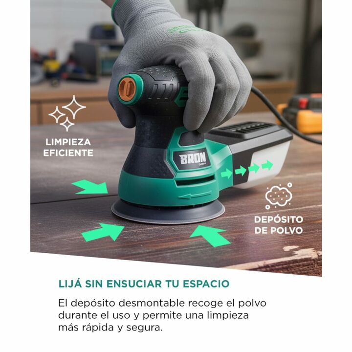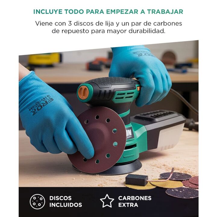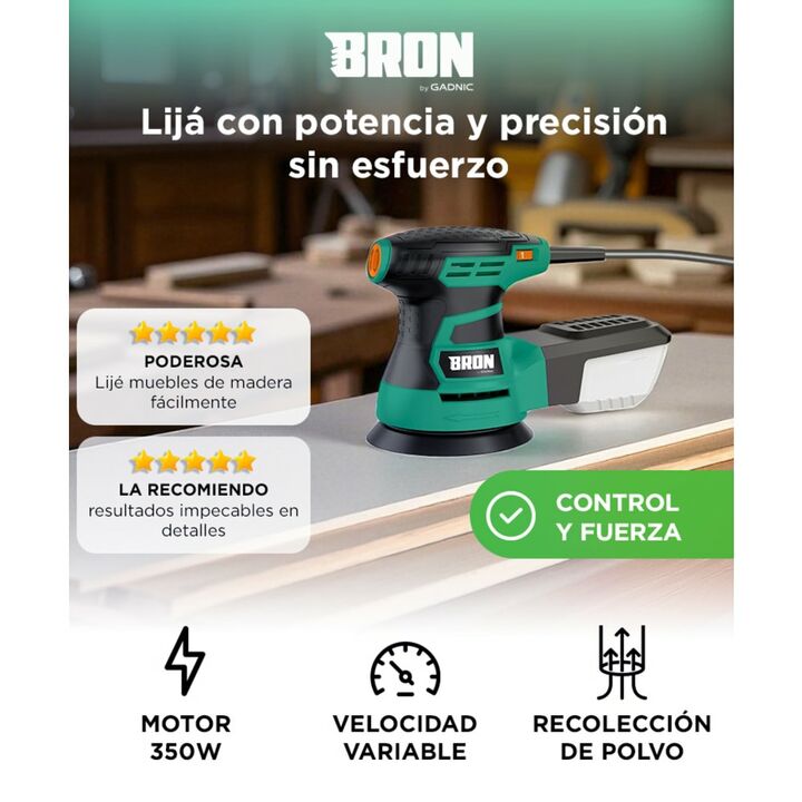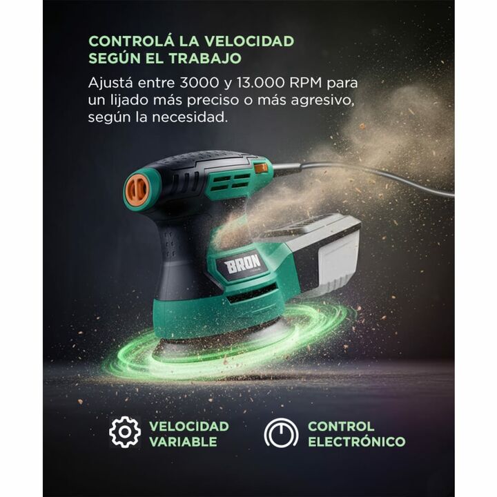 Potencia de 350W para tareas exigentes Lijá todo tipo de superficies con un motor confiable y fuerte, ideal para proyectos de carpintería o restauración. Control total de velocidad Regulá la velocidad entre 3000 y 13.000 RPM para acabados finos o remoción rápida, según el tipo de trabajo. Diseño com...