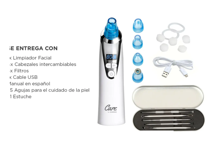 Especificaciones Limpiador Facial Care By Gadnic BF3078 Removedor de Puntos Negros 5 Velocidades - CLEAN001 Tensión: 3.7 V Potencia: 1 W Dimensiones: 18 Extractor De Puntos Negros Gadnic KM600 Kit De 5 Agujas Acné - KITMANI6 Ideal para el cuidado de la piel Material: Acero inoxidable plata Saca los ...