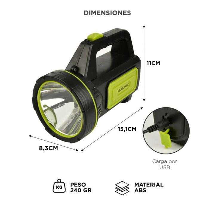 Luz LED de largo alcance: Proyecta un haz potente y definido de hasta 100 metros. Ideal para situaciones de baja visibilidad, como campamentos, senderismo o cortes de energía. Su potencia permite iluminar caminos, interiores amplios o puntos específicos a gran distancia. Diseño liviano y resistente:...