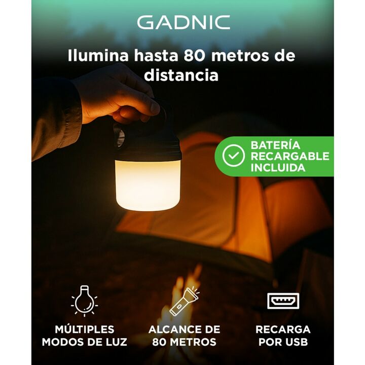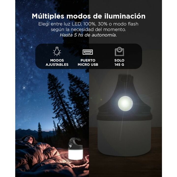 Alcance de hasta 80 metros: Iluminá espacios amplios con su potente haz de luz blanca. Ideal para exteriores, cortes de luz y emergencias. Modos para cada situación: Usá luz frontal, lateral, baja intensidad o modo intermitente. Ajustá según necesidad. Recargá fácil por USB: Conectá el cable micro U...