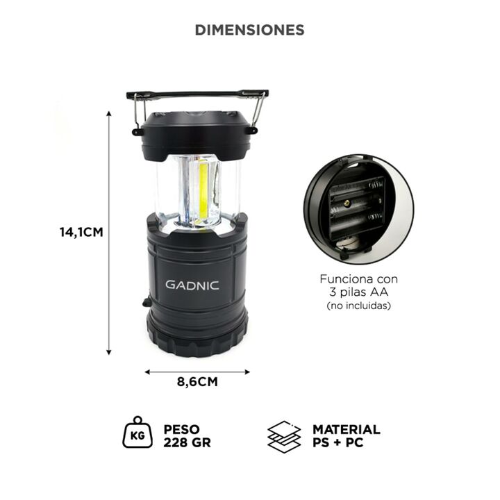3 modos de iluminación adaptables: Combiná luz lateral COB para una iluminación amplia o LED frontal para foco direccional. Ideal para múltiples usos: cortes de luz, salidas al aire libre, reparaciones o lectura nocturna. Elegí el modo que mejor se ajuste a cada situación. Diseño retráctil y práctic...