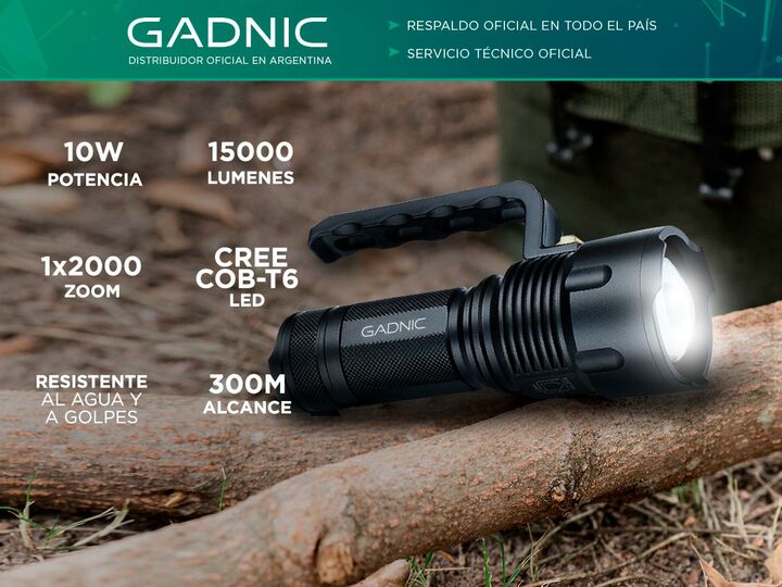La linterna táctica militar Gadnic GD-LN35 ofrece una potencia excepcional de 15,000 lúmenes, brindando una iluminación intensa en cualquier situación. Su diseño robusto incluye un agarre ergonómico y resistente al agua, ideal para condiciones extremas. Gracias a su tecnología LED de alto rendimient...