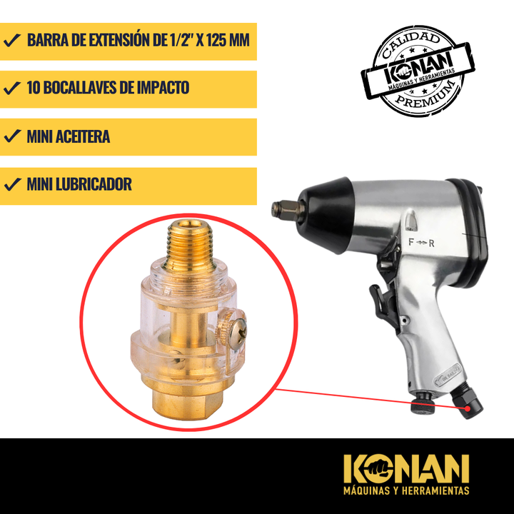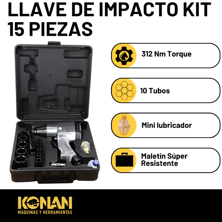 Kit Llave de Impacto Neumática 15 Piezas Konan – Modelo KKI/01