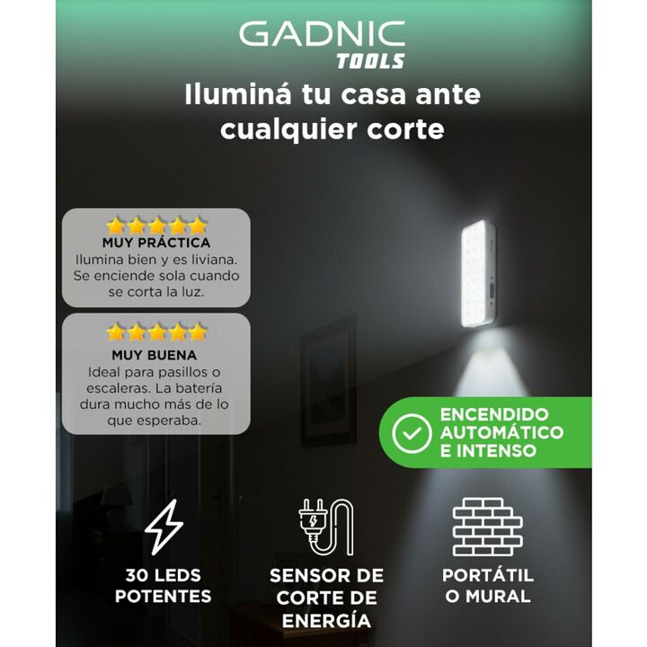 ¡GADNIC Tools presenta su nueva línea de Luces de Emergencia! Prácticas, versátiles y de alta calidad, estas innovadoras luces son perfectas para la oficina, el hogar, camping y mucho más. Equipadas con enchufe IRAM 220V y batería recargable, destacan como una de las mejores del mercado. Ofrecen 3 m...