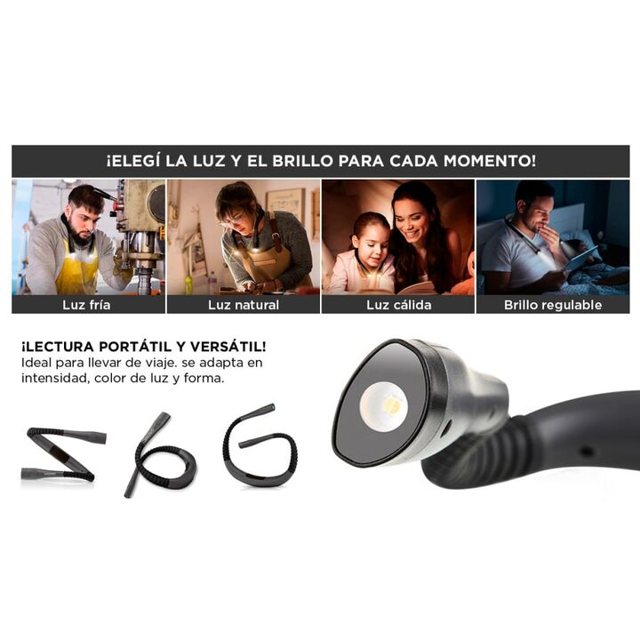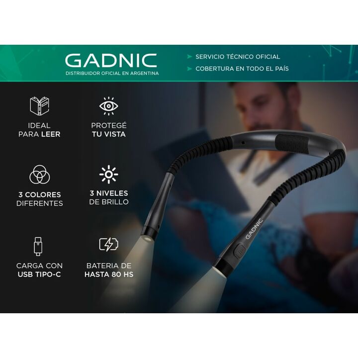 Lectura sin límites, sin enchufes: La Luz LED Gadnic Read Pro te acompaña donde estés. Su diseño flexible y recargable te permite leer cómodamente en la cama, en viajes o donde quieras, sin depender de tomas eléctricas. Iluminación ajustable para cada momento: Con 6 modos de intensidad regulables, e...
