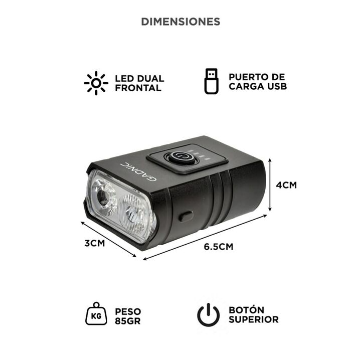 Potencia luminosa de 500 lúmenes Ideal para actividades nocturnas, esta linterna ofrece gran visibilidad con haz de luz de hasta 200 metros. Modos de luz adaptables Elegí entre luz baja, alta, combinada, flash o estroboscópica para cada situación. Incluye función de respiración. Diseño compacto y ul...