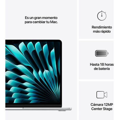 MacBook Air 13 Apple M4 CPU 10Core GPU 10Core, 512GB SSD, 24GB de Ram, Silver - Z1GS000SG La MacBook Air de 13 delgada y ligera. Con el nuevo superpoderoso chip M4, ofrece un rendimiento increíble y hasta 18 horas de batería para acompañarte en tu día de trabajo. Con el chip M4 obtendrás la velocida...
