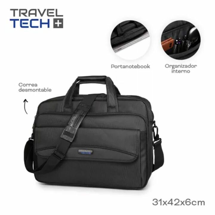 El Maletín Portanotebook Travel Tech 21806 está diseñado para transportar notebooks de hasta 17 pulgadas con total seguridad y comodidad. Ideal para uso laboral, universitario o viajes, combina diseño ejecutivo con gran capacidad de organización.