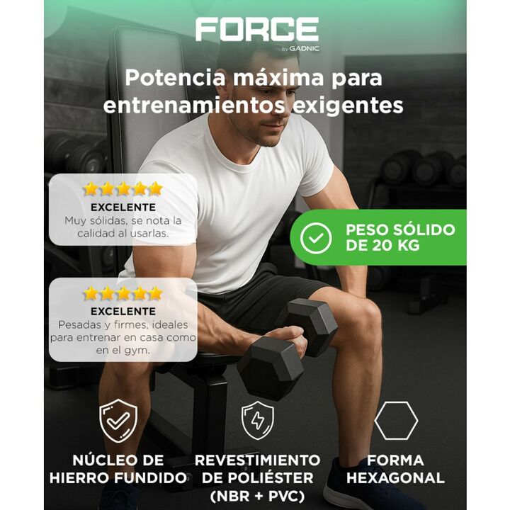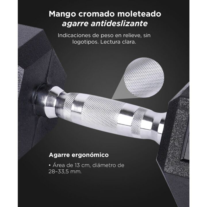 Potencia máxima: 20 kg diseñados para entrenamientos intensos. Medidas robustas: 36 × 17,5 × 15,5 cm, perfectas para alto rendimiento. Agarre seguro: Área de 13 cm y diámetro de 28–33,5 mm. Material duradero: Núcleo sólido con recubrimiento protector. Entrenamiento avanzado: Ideal para ejercicios de...