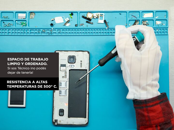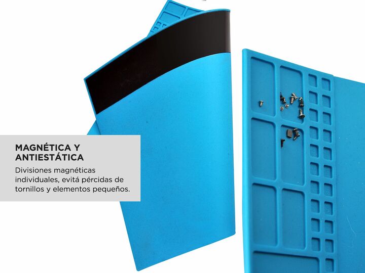Protección de la superficie: la alfombrilla de soldadura de silicona protege tu espacio de trabajo de quemaduras resistiendo temperaturas de hasta 500° Espacio de trabajo limpio y ordenado: mantiene un entorno de trabajo limpio y organizado. Asegúrate de que no se pierden piezas pequeñas o herramien...