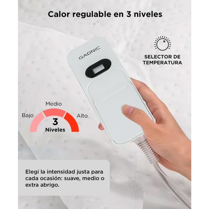 Descubrí el confort definitivo con nuestra manta térmica de lujo. Sus dimensiones de 160 cm x 140 cm son ideales para abrazarte en las noches frías. Lo mejor de todo es que podes personalizar tu experiencia de calidez con sus 3 niveles de temperatura. Tú y tu pareja pueden disfrutar del control indi...