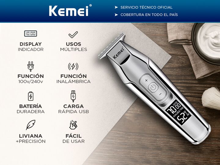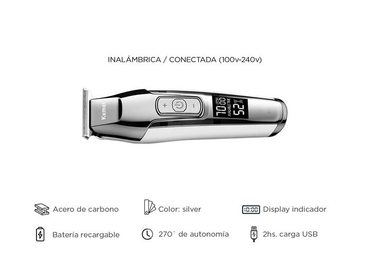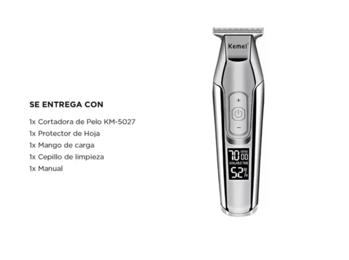¡Nueva Trimmer KM-5027 By Kemei! La nueva recortadora es ideal para quienes buscan corte, rasurado, recorte, y perfilado, todo en una maquina. Es una herramienta muy útil para pieles sensibles porque no irrita: sirve para recorte de barba, cortar patillas, pelo del cuello y nuca. Cortes mas precisos...