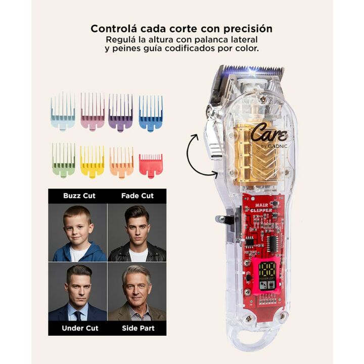 ¡Nueva maquina de cortar el pelo profesional con armazón transparente by Gadnic! Ideal para peluquerías y barberías exigentes, esta máquina de cortar te permitirá realizar cortes precisos de manera profesional, gracias a sus cuchillas de fibra de carbón, armazón transparente y engranajes metálicos. ...