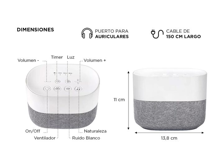 Te presentamos nuestro nuevo producto Máquina de Ruido Blanco de 26 sonidos de Gadnic! Diseñado para brindarte un entorno relajante. El botón táctil ligero permite un control intuitivo y suave, para que puedas personalizar tu experiencia sonora con facilidad. Con su función de memoria, podrás record...