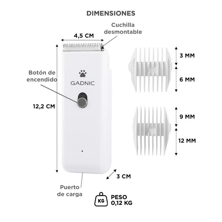 Gadnic presenta su nueva rasuradora para perros y gatos No solo es una rasuradora, sino que es un kit completo de aseo para mascotas. Apto para todo tipo de pelaje Las herramientas del kit permiten el aseo completo de tu mascota sin importar el largo o grosor de su pelaje. Las tijeras son ideales pa...