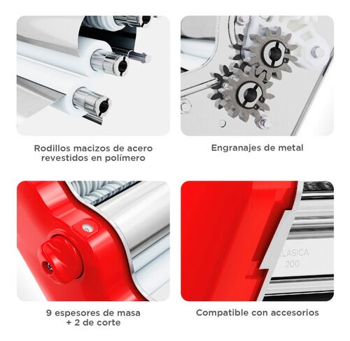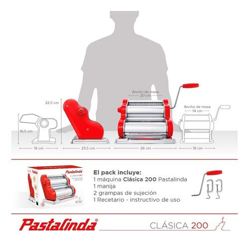 Pastalinda Clásica 200 Roja - C200ROJA - Máquina elaboradora de Pasta Casera. Fácil de usar y con un diseño único y personalizado que te permitirá preparar mayor cantidad de pasta en menos tiempo, gracias a sus 20cm de ancho de masa Amasa y estira todo tipo de pasta, desde deliciosos tallarines y es...