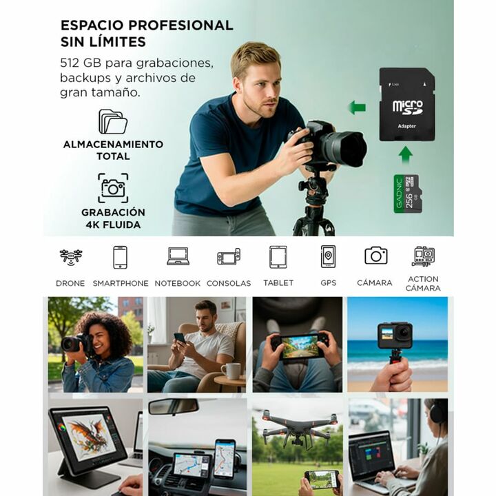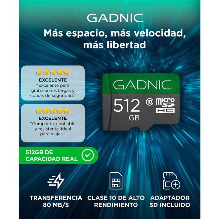 ¡Lleva tu almacenamiento al siguiente nivel con nuestra tarjeta micro SD de 512GB, diseñada para satisfacer todas tus necesidades digitales! Nunca te quedes sin espacio con una increíble capacidad de 512GB. Almacena miles de fotos, horas de videos en alta definición, aplicaciones pesadas, música y m...