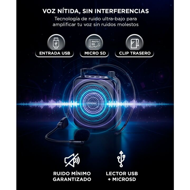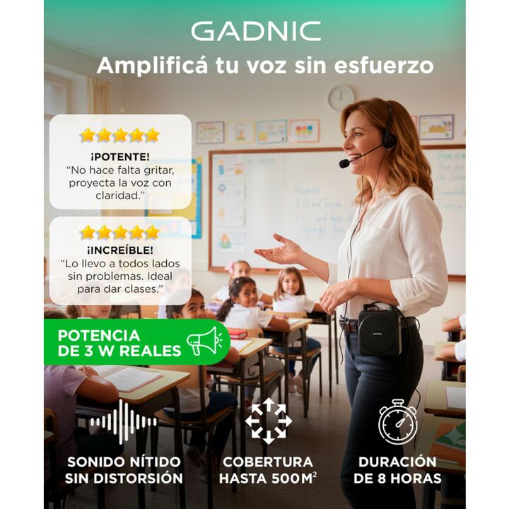 ¡Nuevo Micrófono Amplificador Gadnic Portátil! Amplificador de voz UHF de 3W: el amplificador de voz Gadnic adopta transmisión UHF, con una potencia máxima de 3W para producir un sonido potente, claro, nítido y sin ruido ni distorsión. Cubre aproximadamente 500 Metros Cuadrados, y el rendimiento est...
