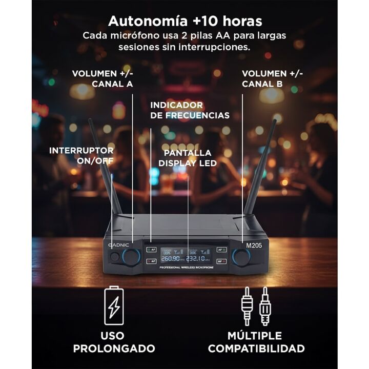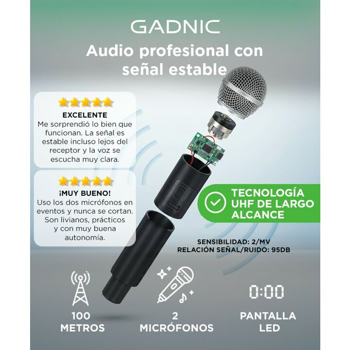 GADNIC presenta su nueva línea de micrófonos inalámbricos profesionales, diseñados para ofrecerte la máxima libertad de movimiento y calidad de sonido. Su diseño inalámbrico permite un uso sin restricciones, ideal para conferencias, karaoke, charlas y mucho más. Experimenta la versatilidad que brind...