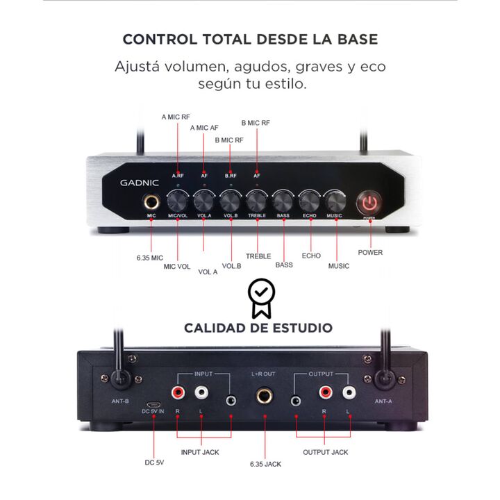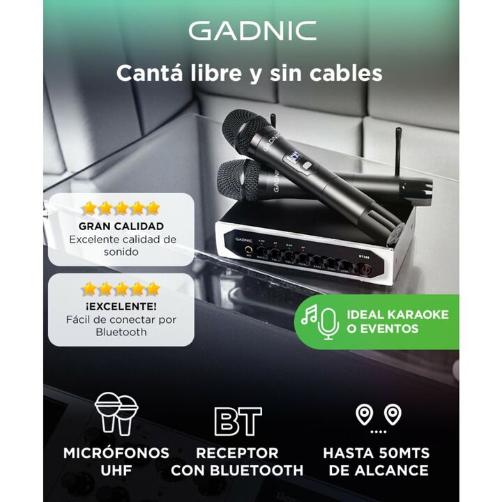 ¡Gadnic presenta su nueva línea de micrófonos inalámbricos! El diseño inalámbrico le permite ir más allá de lo que lo harías con un micrófono con cable. Llevá tus sentidos al máximo experimentando ésta línea de micrófonos profesionales. Podrás usarlos para conferencias, karaoke, charlas y demás. ¡Su...