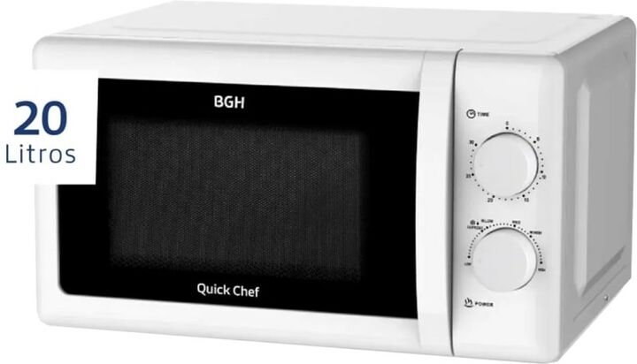 Microondas B120M20 20L 700W Blanco Bgh -Consumo Máximo 1150 W -Potencia De Salida Microondas 700 W -Diámetro Del Plato De Vidrio 24,5 Cm -Clase De Eficiencia Energética C -Capacidad Total 20 L -Capacidad Útil 10 L -Ficha Ficha De 10A -Modo De Descongelamiento -Tiempo De Cocción: Hasta 30 Min -1 Plat...