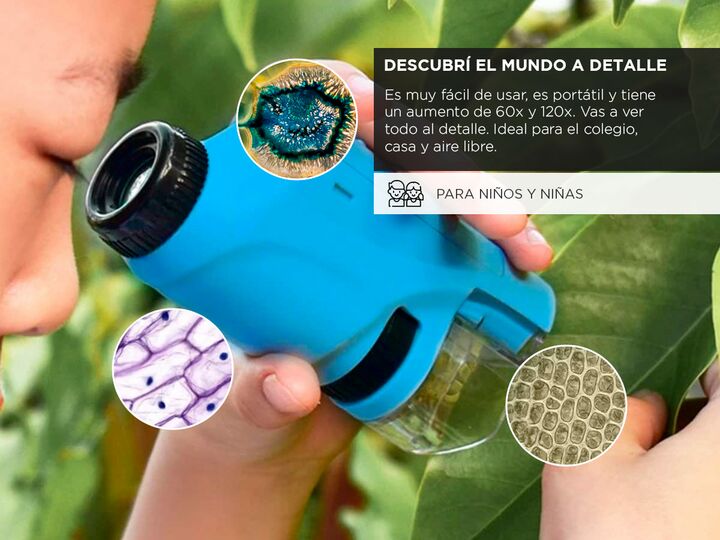 ¡Bienvenidos a un fascinante mundo de descubrimientos! ¿Alguna vez te has preguntado cómo se ven las células de las plantas, los insectos o incluso los granos de arena bajo un microscopio? ¡Con el microscopio mini, podrás descubrir el mundo microscópico de una manera fácil y divertida! Este microsco...