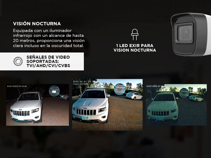 La cámara de seguridad exterior EXIR Bullet de 2MP es una solución confiable para la vigilancia de exteriores. Con un potente sensor CMOS de 2MP y un LED EXIR, esta cámara ofrece imágenes nítidas y claras tanto de día como de noche, con una visión nocturna de hasta 20 metros. Equipada con función IC...