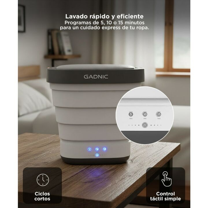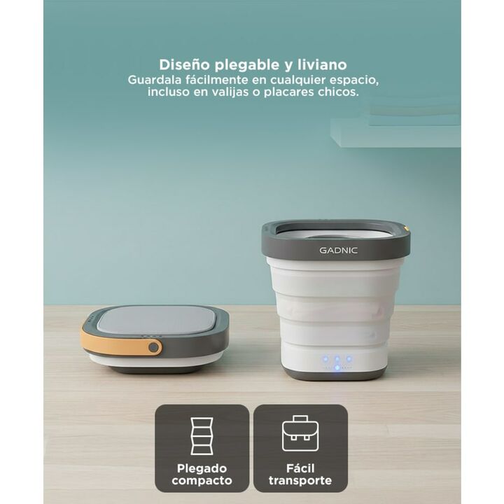Gadnic presenta la nueva lavadora portátil y plegable 2 en 1 Portabilidad y Diseño Compacto: La Mini Lavadora Portátil Gadnic se destaca por su diseño compacto y portátil, lo que la convierte en una solución conveniente para espacios reducidos, viajes y situaciones en las que se requiere una lavador...