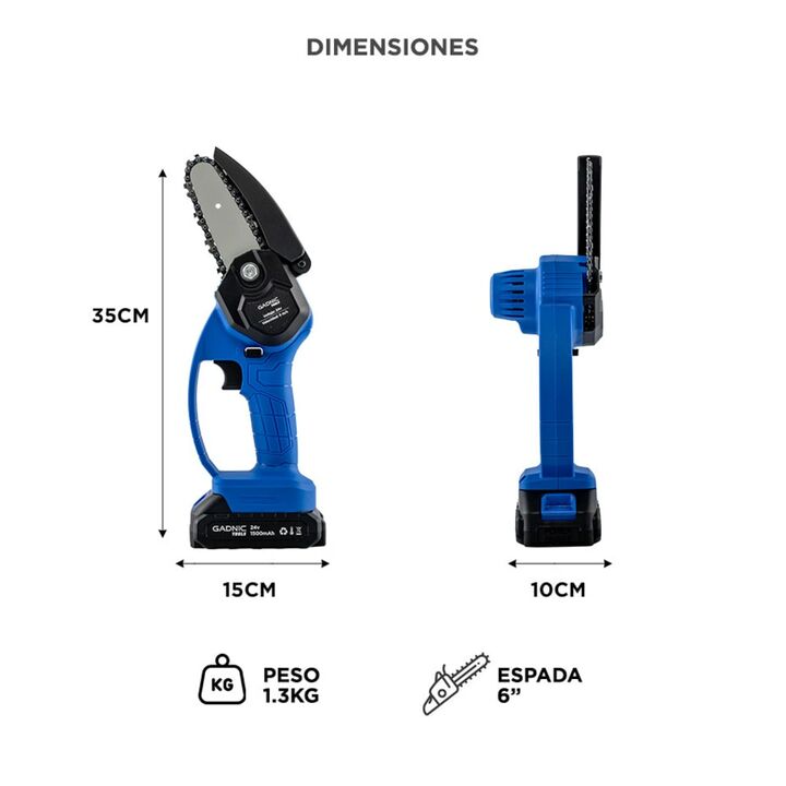 ¡Potencia compacta para trabajos exigentes! La Mini Motosierra Recargable Gadnic MS2400 combina eficiencia, seguridad y portabilidad en una herramienta ideal para tareas de poda, jardinería y mantenimiento general. Equipada con un motor de cobre puro y 2 baterías de 24V 1500mAh, ofrece un rendimient...