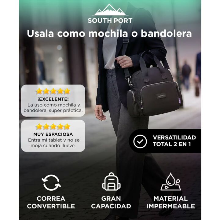 Diseño 2 en 1 con correa convertible: La Mochila Bolso Mujer SouthPort by Gadnic permite usarla como mochila tradicional o como bandolera cruzada. Su sistema versátil se adapta a diferentes estilos y momentos del día. Gran capacidad con espacio para tablet: A pesar de su tamaño compacto, ofrece ampl...