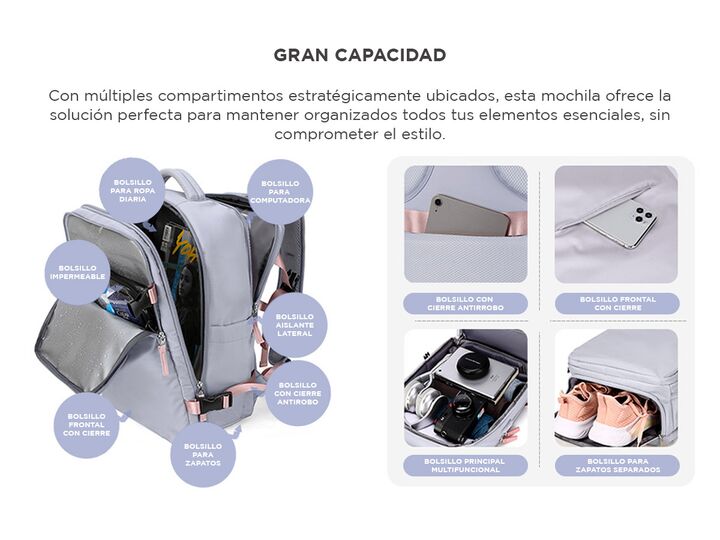 Descubrí la elegancia y funcionalidad en nuestra mochila resistente al agua, diseñada para complementar tu estilo de vida en movimiento. Con múltiples compartimentos estratégicamente ubicados, esta mochila ofrece la solución perfecta para mantener organizados todos tus elementos esenciales, sin comp...