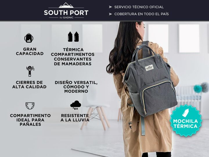 ¡Llega la nueva línea de mochilas maternales SOUTH PORT! Estas mochilas maternales se destacan por su gran capacidad de organización, practicidad y además de su increíble diseño. La mochila maternal SOUTH PORT cuenta con su nueva tecnología de tela de nylon resistente a la lluvia, compartimentos ant...