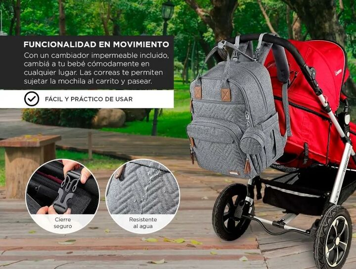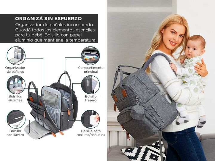 Descubrí la mochila maternal definitiva, diseñada para simplificar tu vida y hacer que cada salida con tu bebé sea una experiencia sin complicaciones. El organizador de pañales incorporado y los bolsillos interiores en el compartimento principal permiten tener todo perfectamente ordenado. Ya no perd...