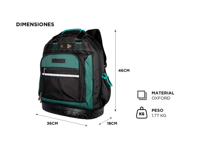 Lleva tus herramientas de manera segura y organizada con nuestra increíble Mochila Organizadora de Herramientas. Diseñada para brindarte la máxima comodidad y capacidad de carga, esta mochila es la solución perfecta para profesionales y entusiastas. Con una capacidad máxima de carga de 45 kg, esta m...