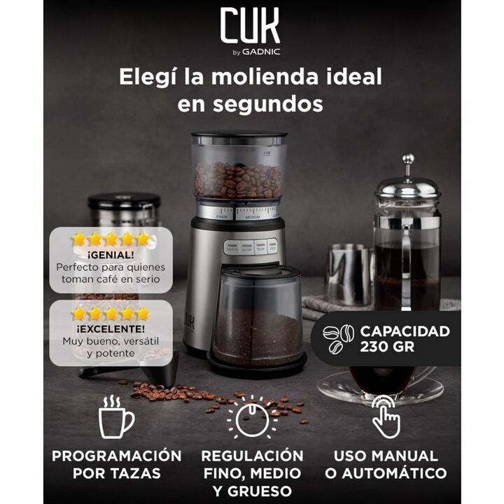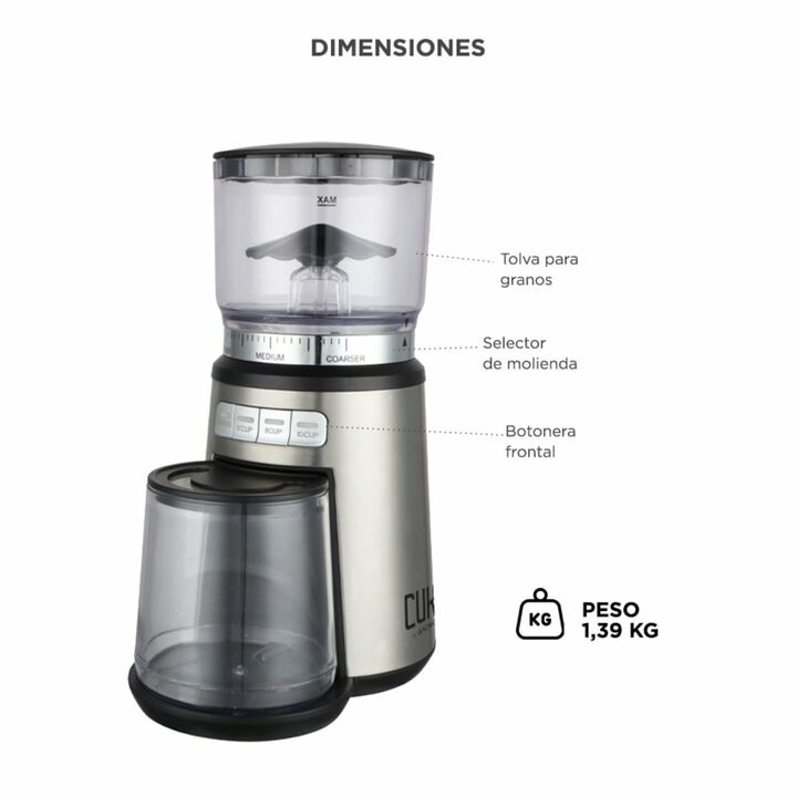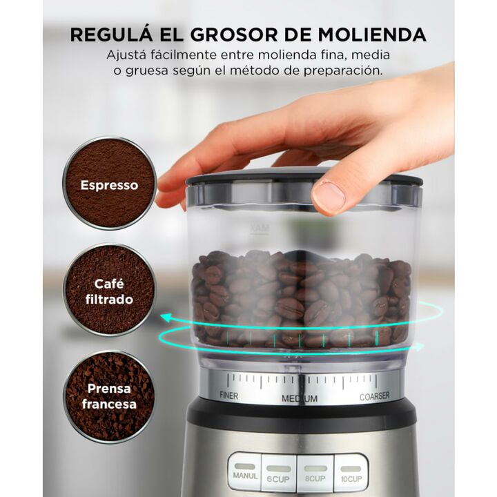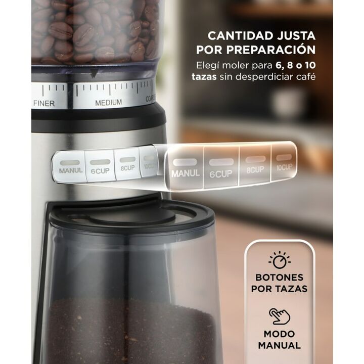 Molienda regulable para distintos tipos de café: El molinillo de café eléctrico Zendo Max permite ajustar el grosor de molienda en fino, medio o grueso, adaptándose a espresso, filtro o cafetera tradicional según tu preferencia diaria. Programación automática por cantidad de tazas: Incorpora botones...