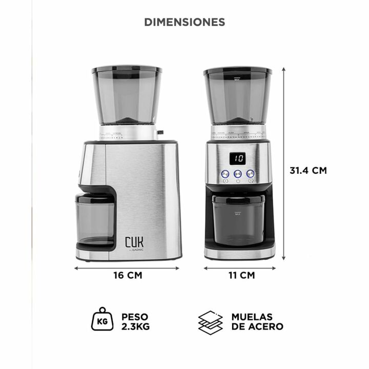 ¡Nueva moledora de café y granos Kahve de Gadnic! ¡Empezá a vivir la verdadera de la experiencia del café con Gadnic! La nueva línea de cafetería de la línea CUK by Gadnic nos trae la maquina mas eficiente a la hora de preparar un buen café. Su potente motor, su fresa cónica y sus más de 31 configur...