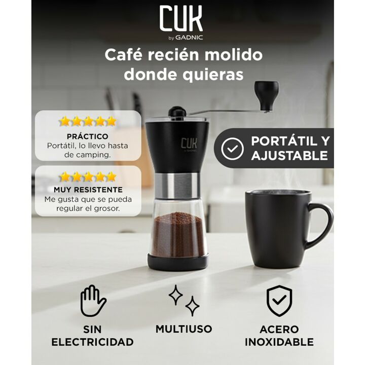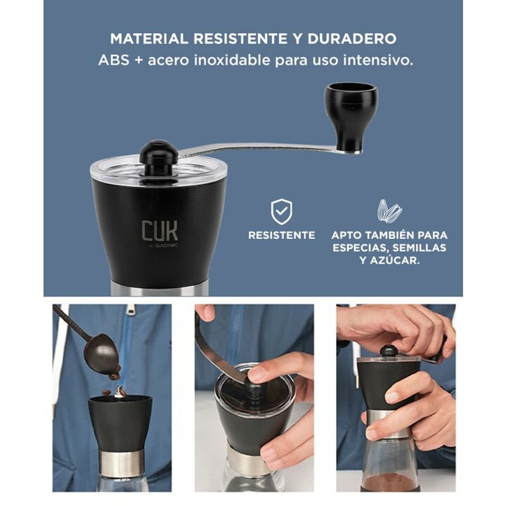 El diseño portátil le permite llevarlos a casa, a la oficina o a cualquier otro lugar. El café en polvo que se ha molido demasiado de una vez se puede almacenar temporalmente, es tanto un molinillo como una lata sellada de café en polvo.