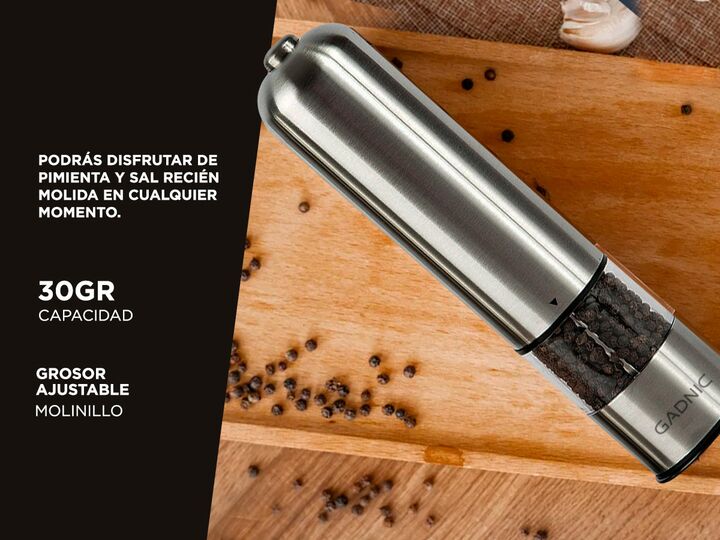 Descubre el placer de disfrutar de pimienta y sal recién molida en cualquier momento con el Molino Automático de Sal y Pimienta de Gadnic. Este ingenioso dispositivo te permite ajustar el grosor del molido, transformando tus comidas en una explosión de sabores. Su funcionamiento es simple y eficient...