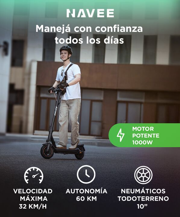 Potencia que transforma cada recorrido: El NAVEE GT3 Pro combina un motor de 1000W de potencia máxima con una aceleración inmediata y estable, permitiéndote avanzar con firmeza incluso en pendientes del 22%. Su respuesta suave y constante ofrece una experiencia de manejo confiable en calles urbanas ...