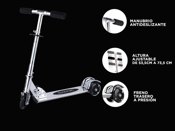 Este monopatín es perfecto para niños a partir de 4 años, soportando hasta 60 kg. Su manubrio ajustable alcanza hasta 73,5 cm, adaptándose al crecimiento de tu pequeño. Con manijas antideslizantes y un sistema reforzado, garantiza una experiencia segura. Las ruedas de PU (silicona) son lisas y silen...