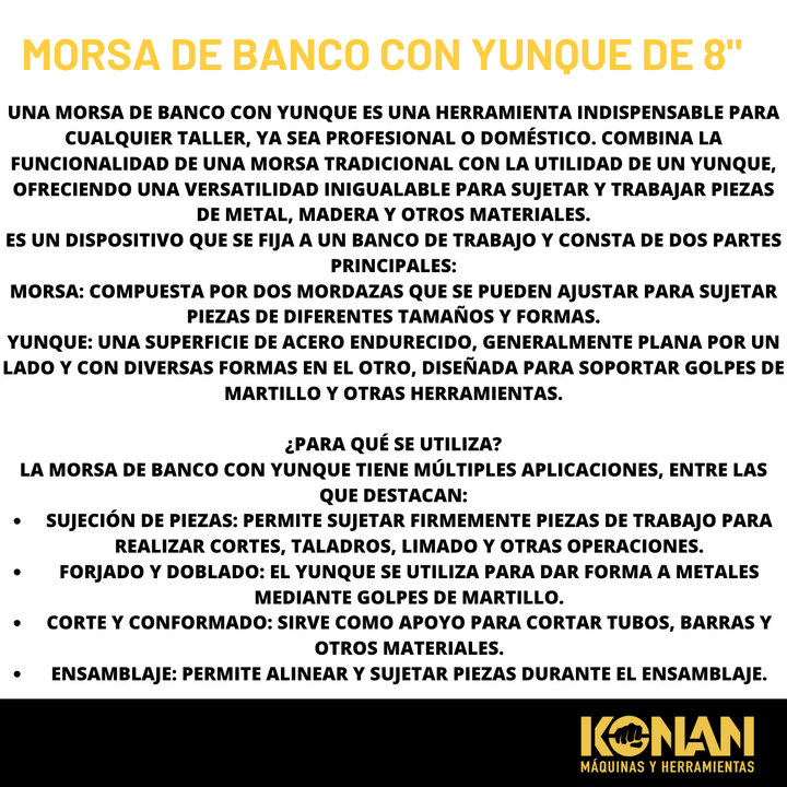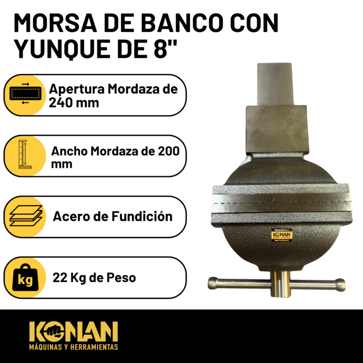Morsa de Banco Konan 8” con Yunque Profesional – KMO/8